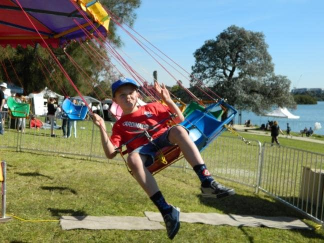 A spinning Chair-o-Plane Carousel for use at many types of event, suitable for smaller children. Features the option of lights and music!