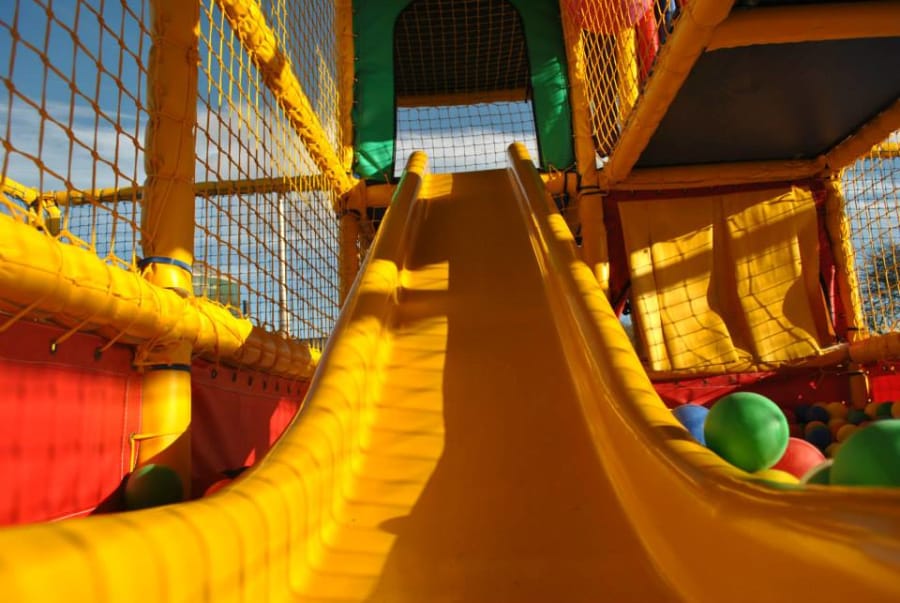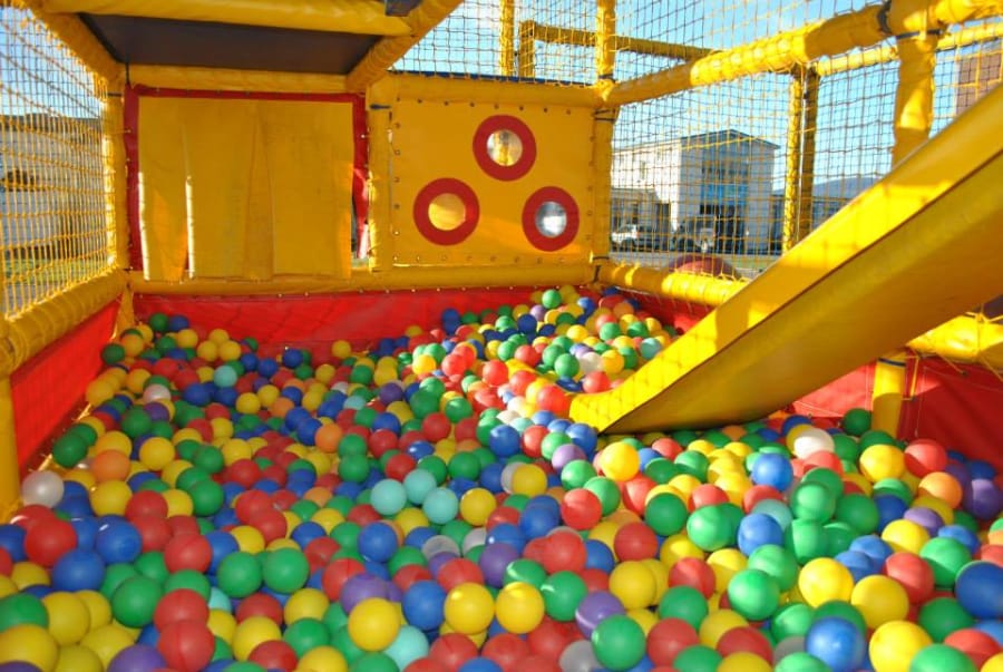 This multi-story attraction features a ball pool, slide, punchbags, climbing apparatus and tunnel, trampolines, giant inflated balls and more!