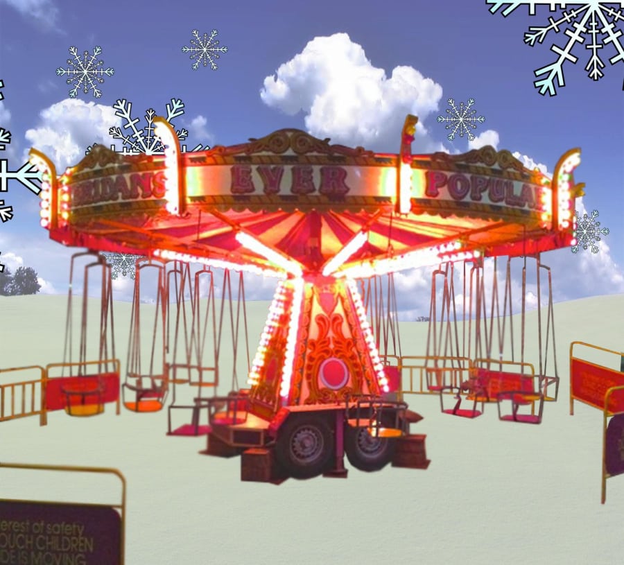 A spinning Chair-o-Plane Carousel for use at many types of event, suitable for smaller children. Features the option of lights and music!