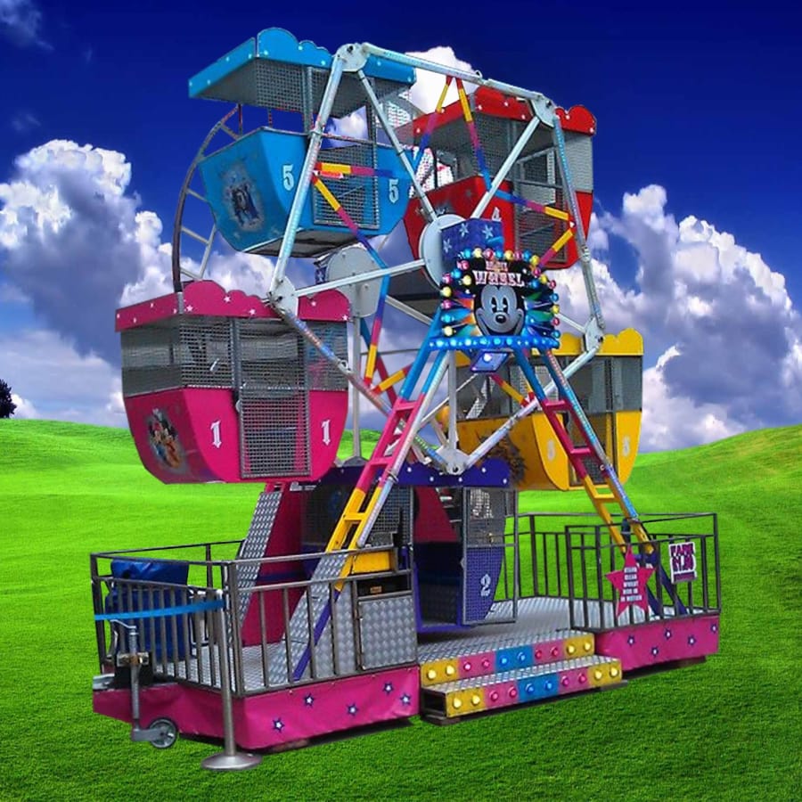 An LED lit mini Ferris Wheel perfect for use at any children's event, suitable for smaller children. Each carriage is fully enclosed & seats four small children!