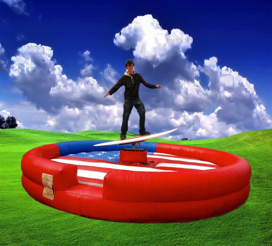 Should you be thrown from the board after riding the waves, you will safely fall onto an inflatable bouncy surround, meaning this ride can be placed anywhere there is sufficient space, even indoors!